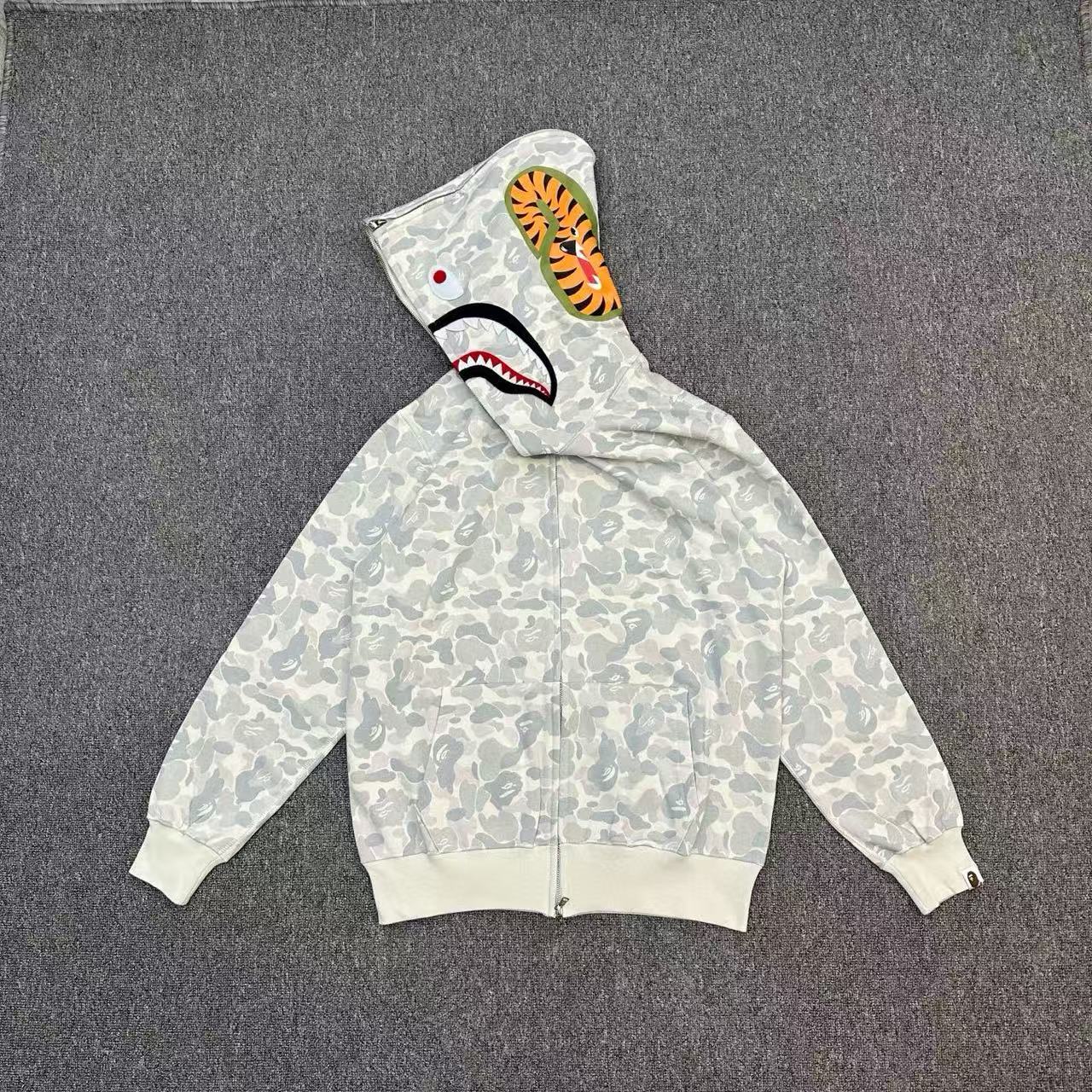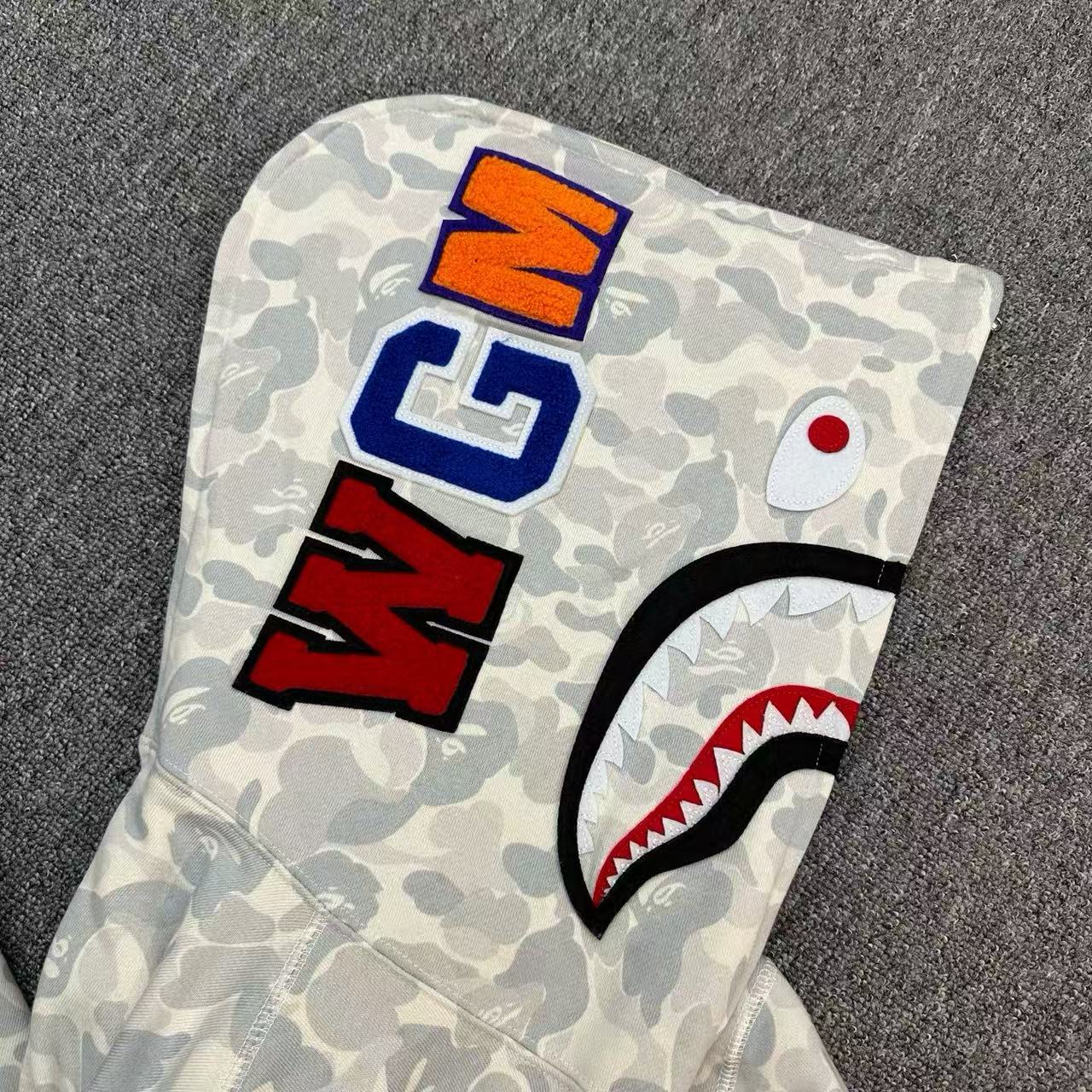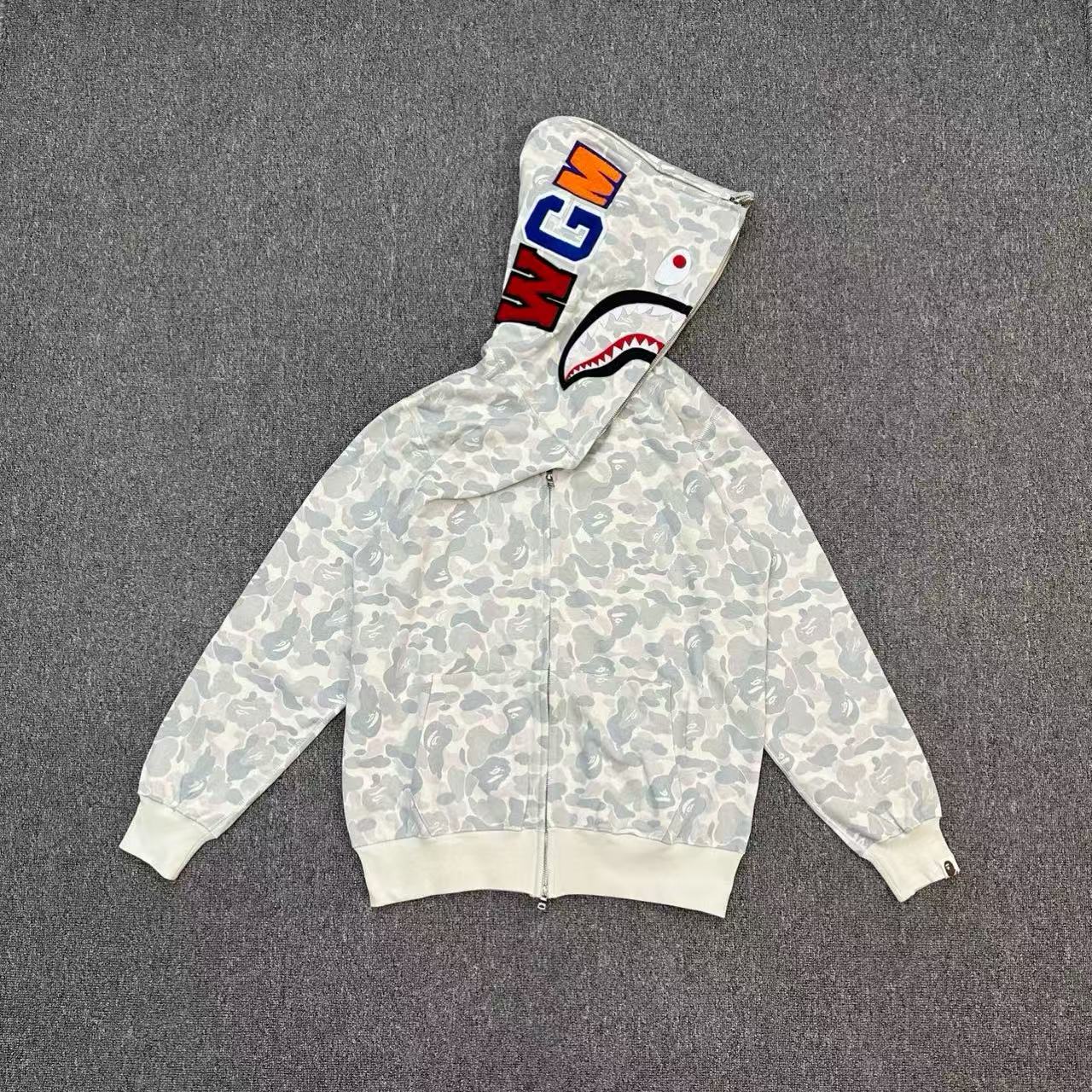 1:1 best quality Bape embroidered camouflage hooded coat with shark hat-white