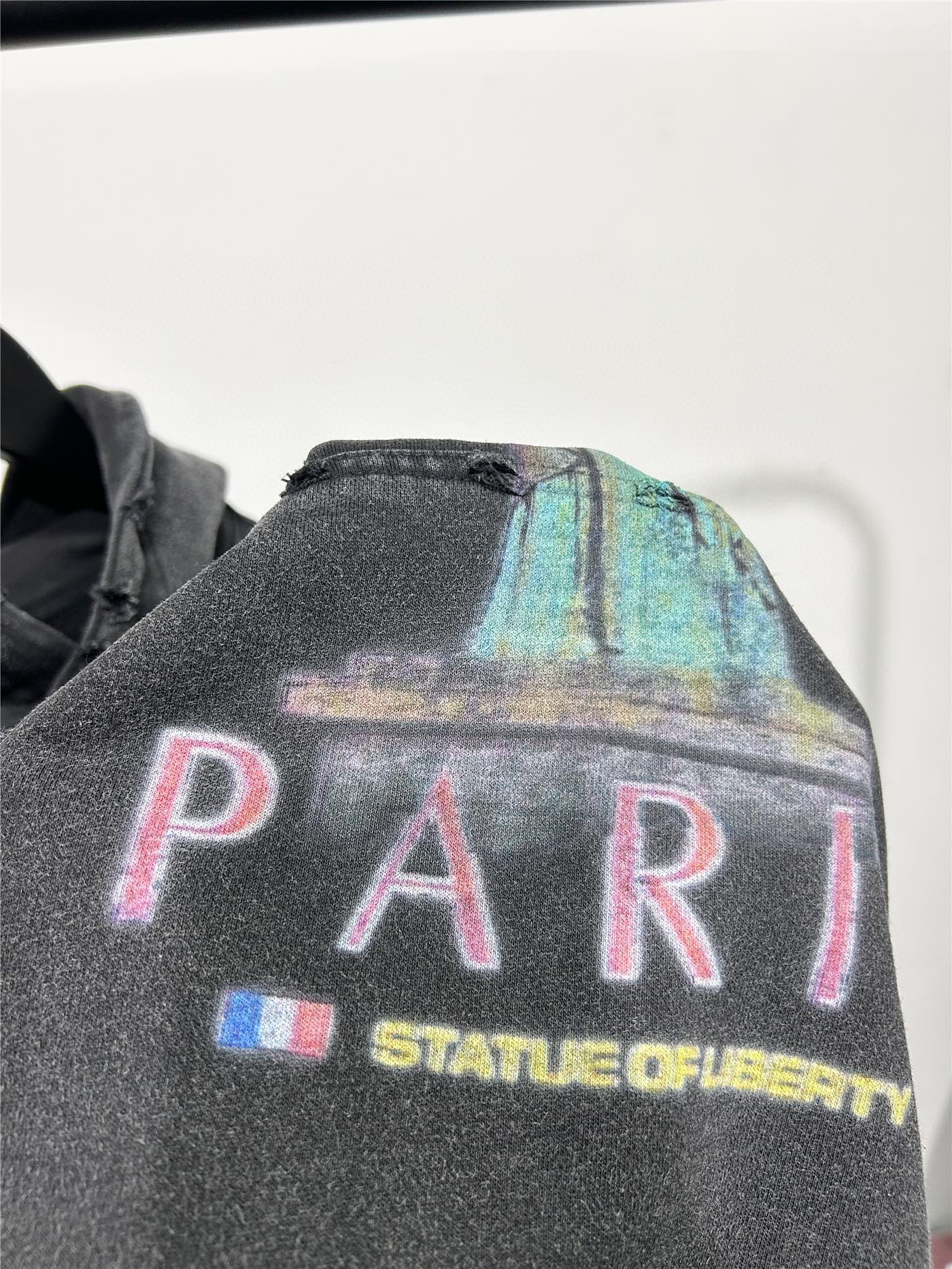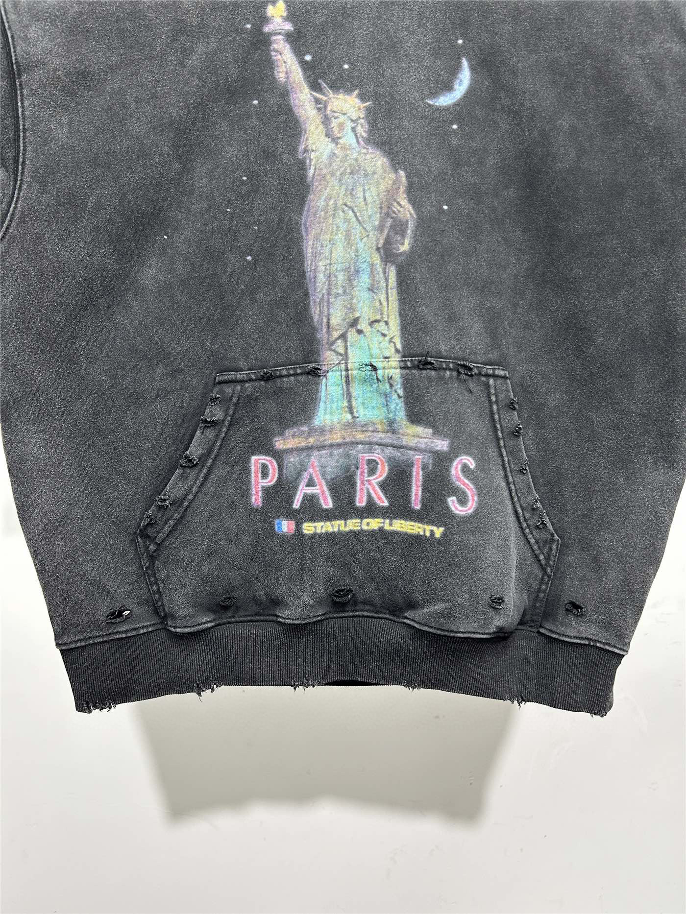 Balenciaga Statue of liberty Printed with hole design Hoodie washed Black