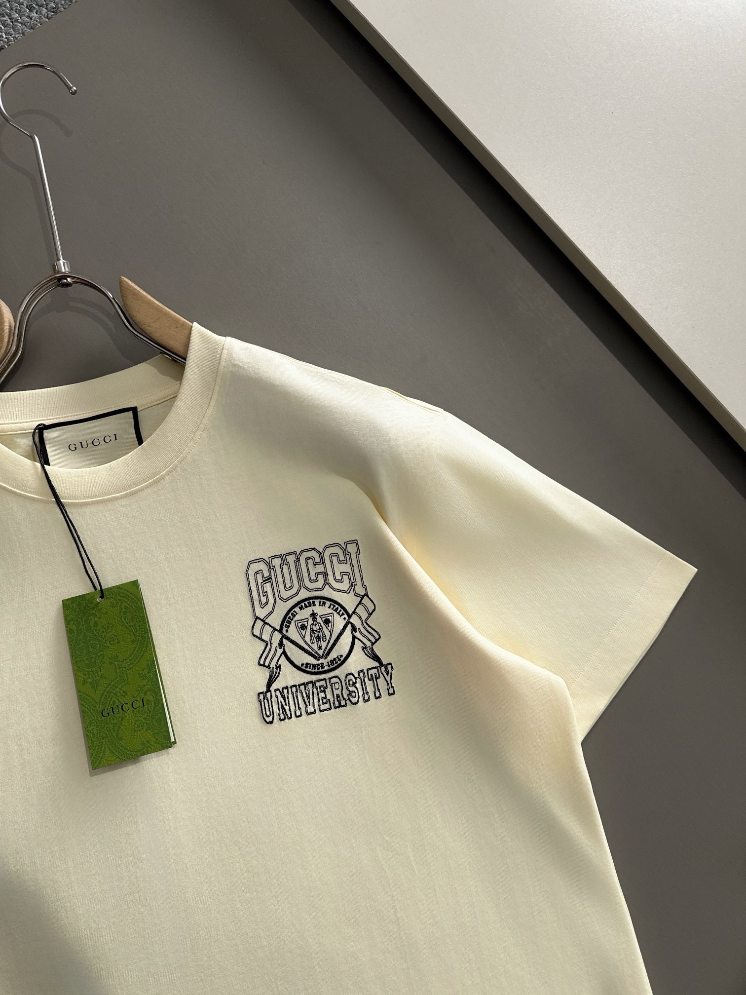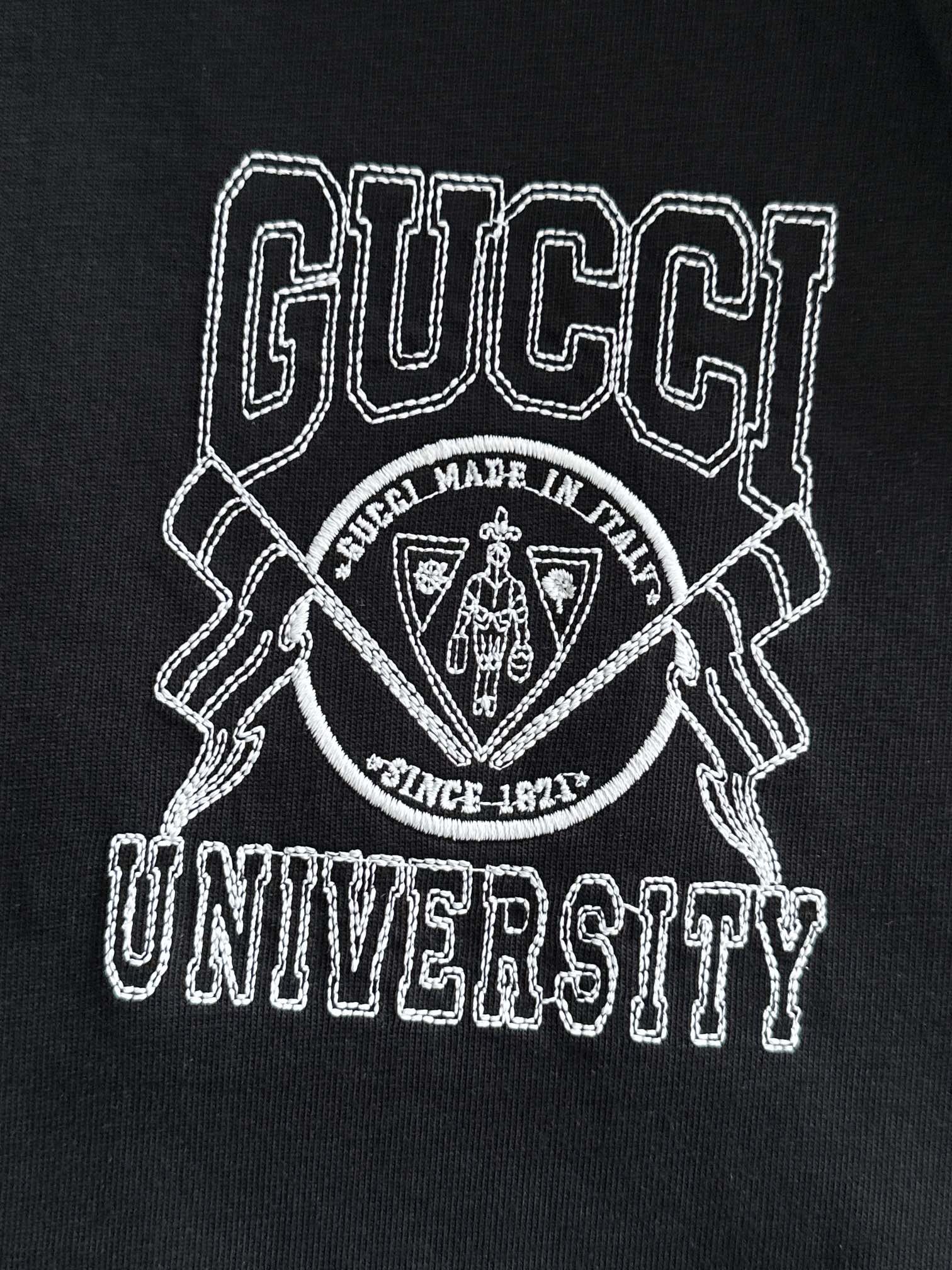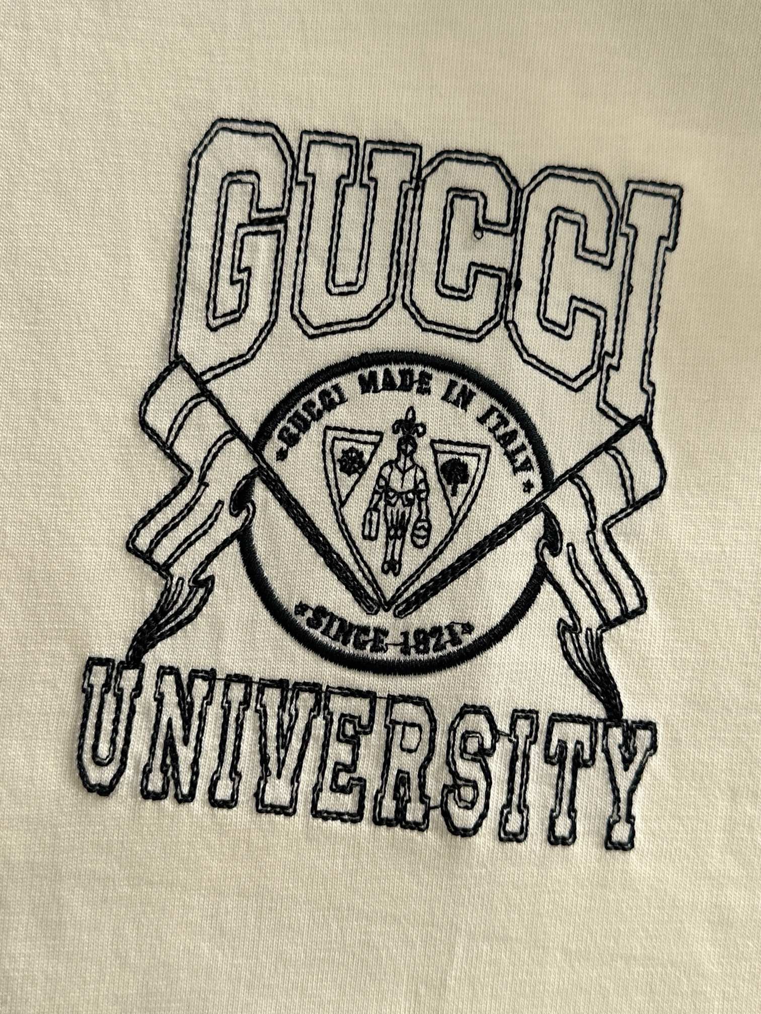 gucci high-density embroidery cream and black tee