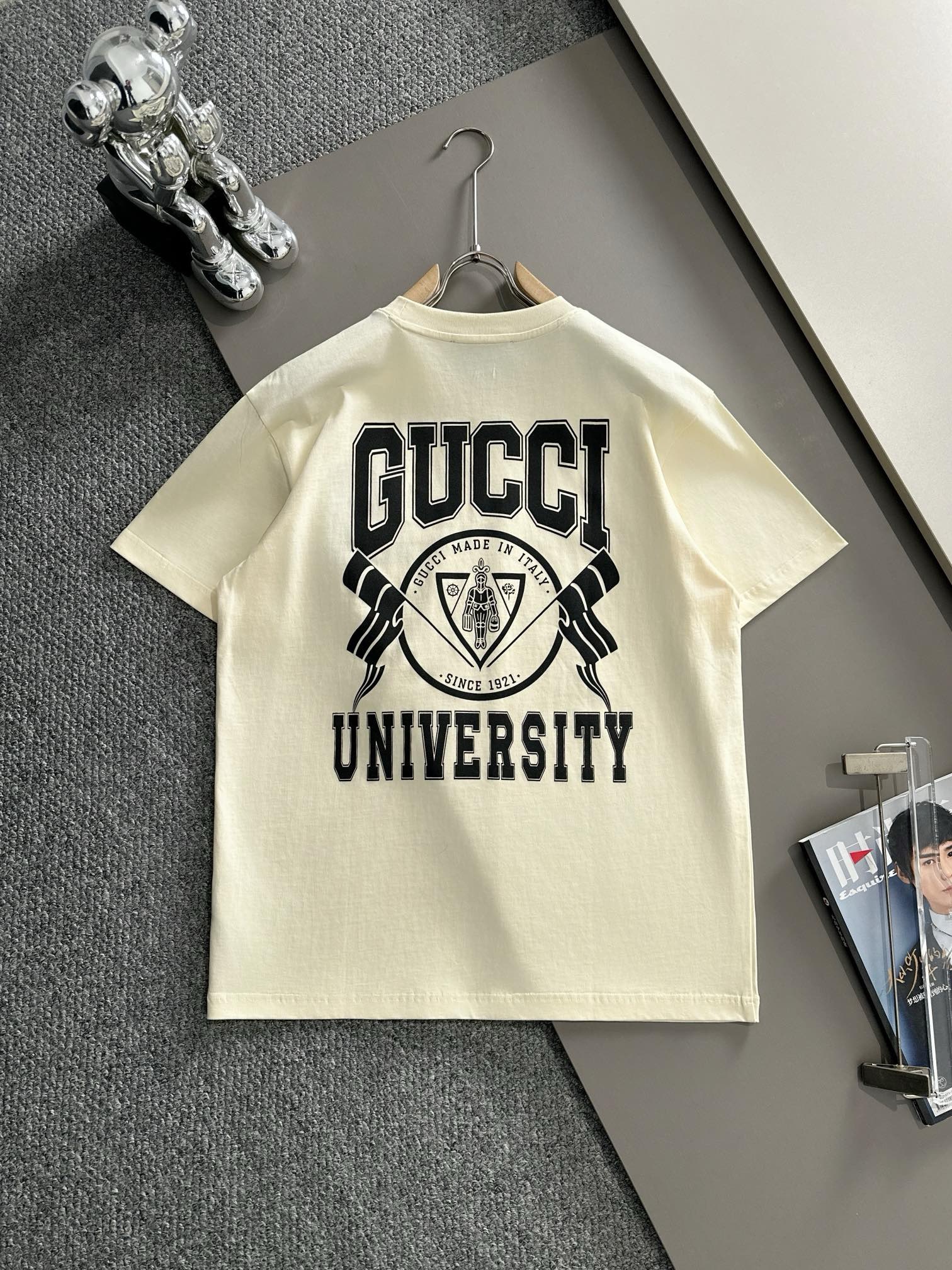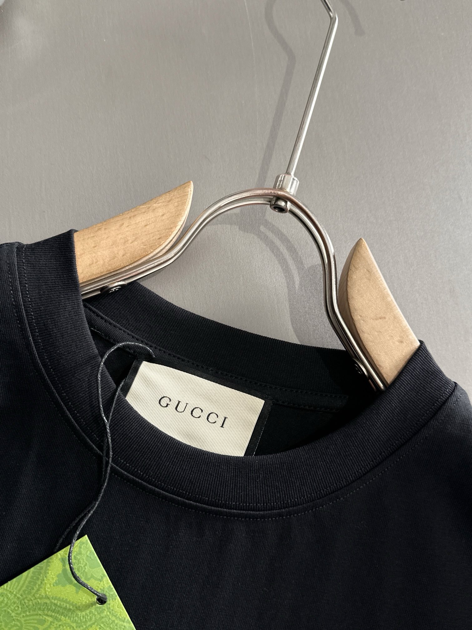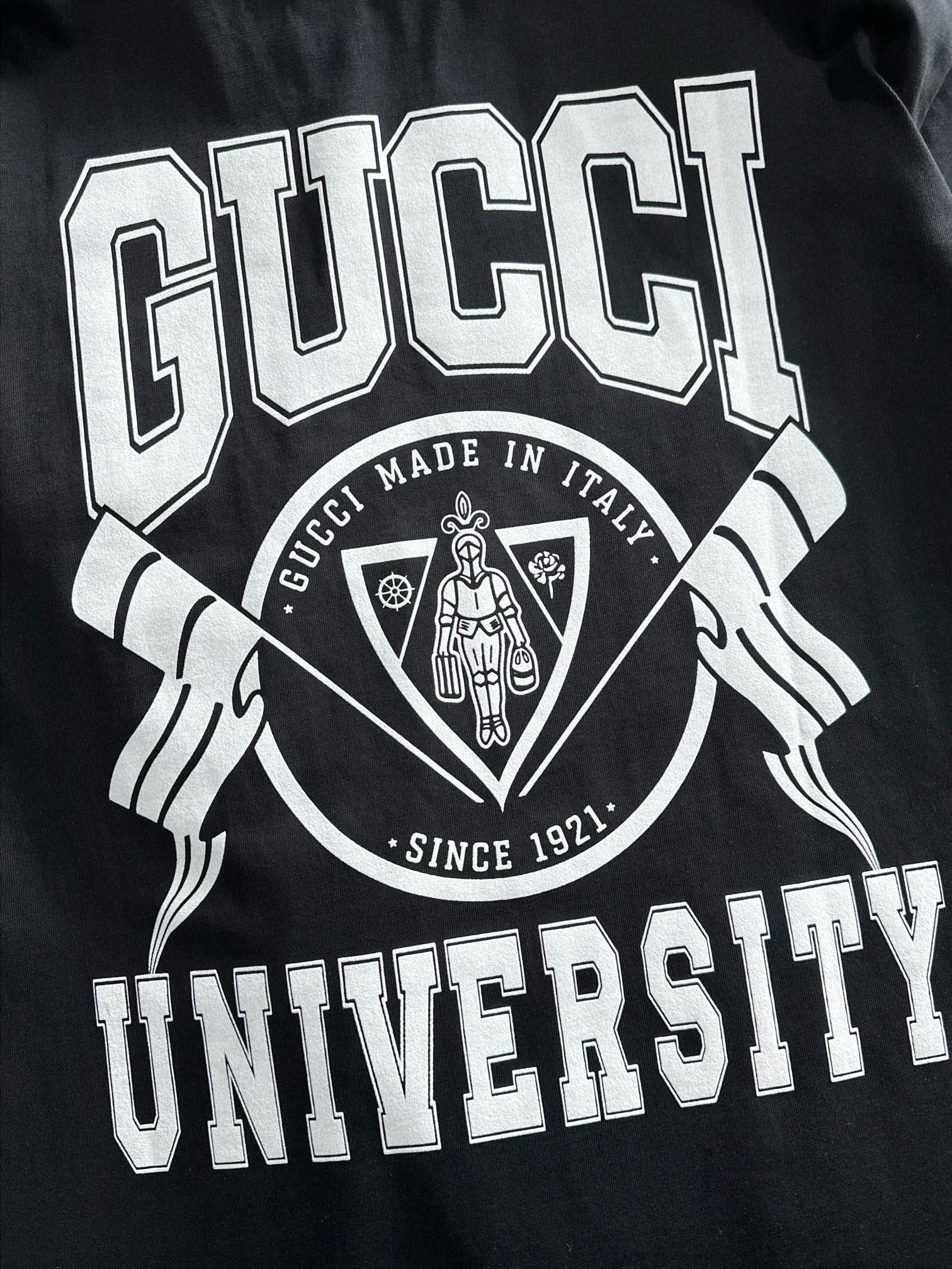 gucci high-density embroidery cream and black tee