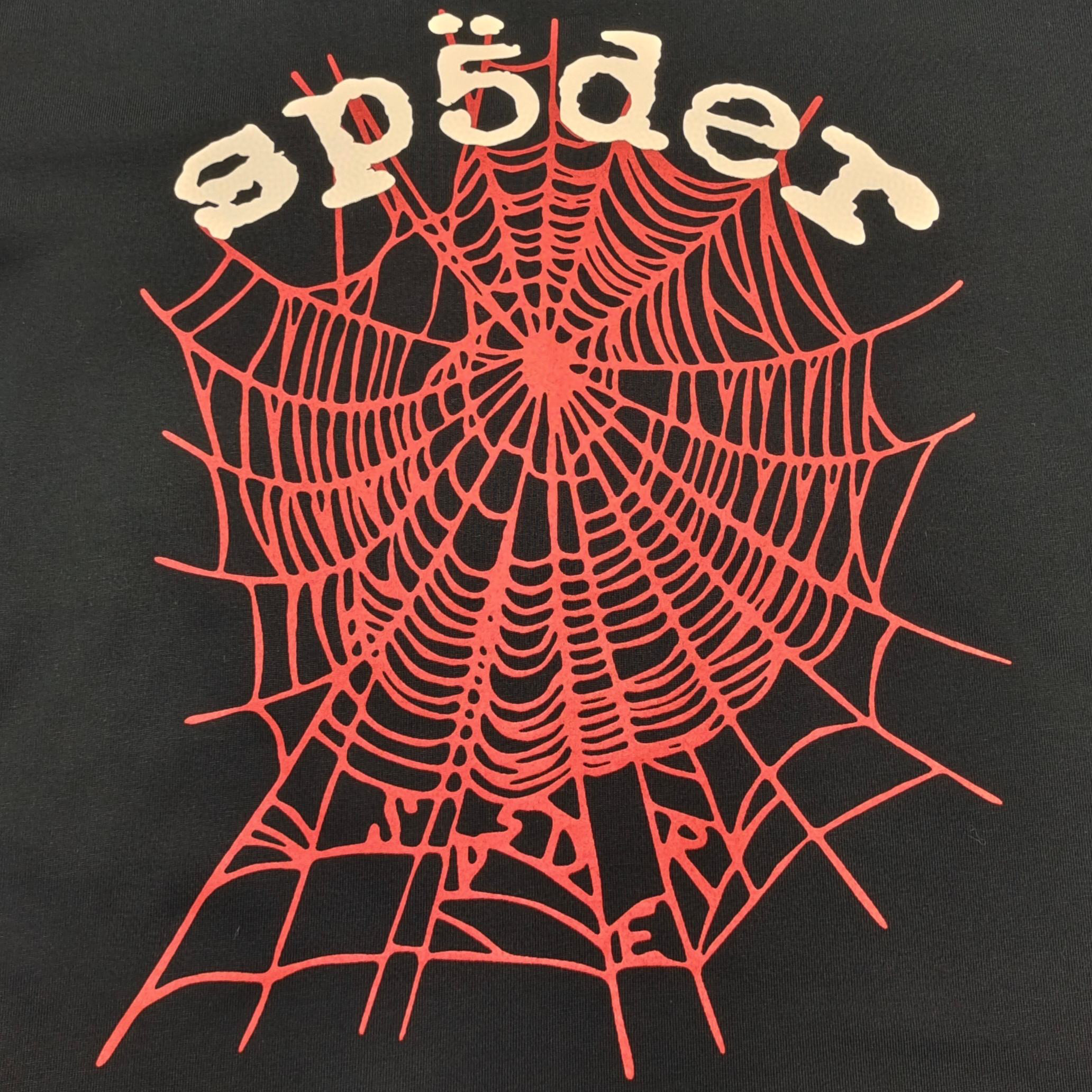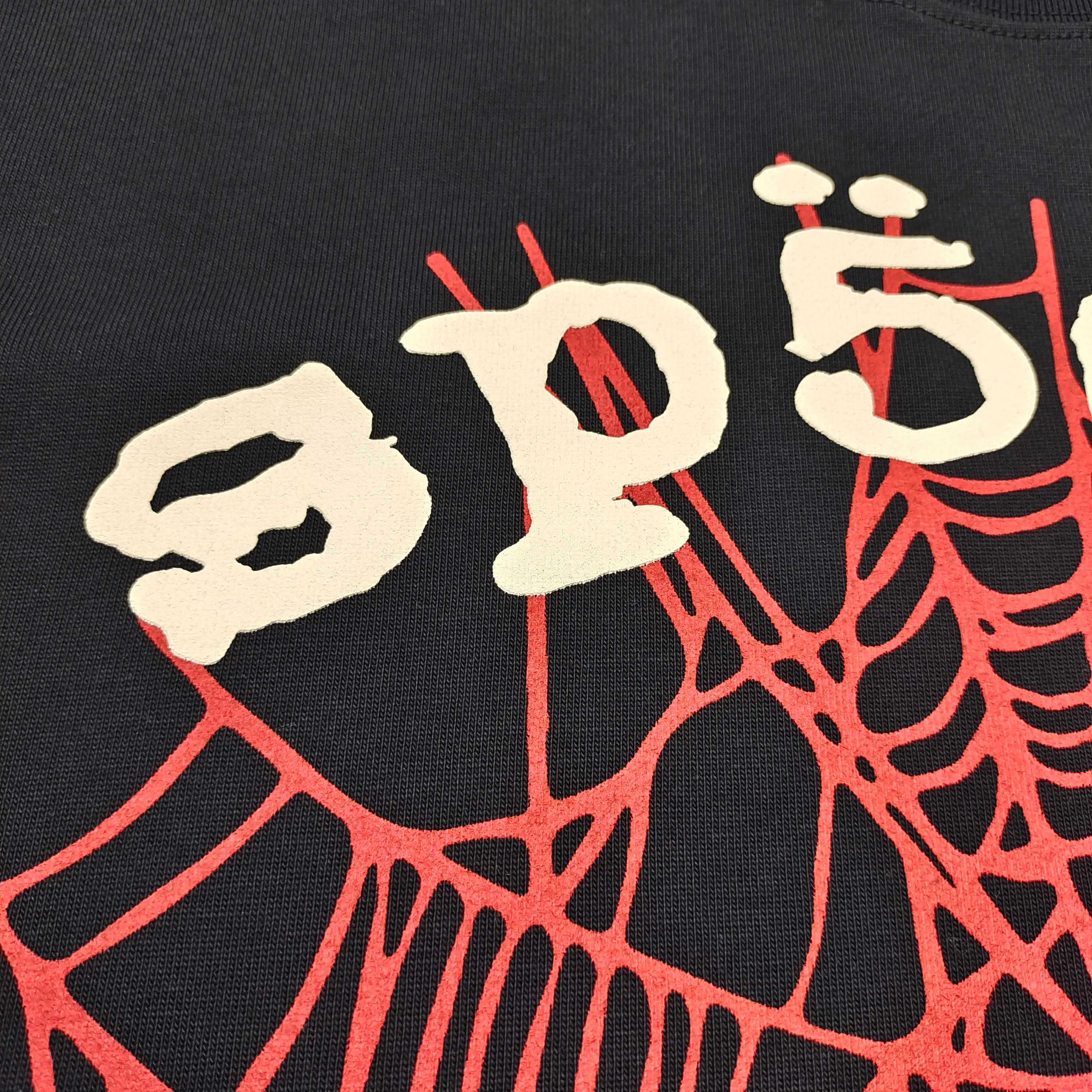 1:1 Best Quality Sp5der Red Net Logo Tee Black
