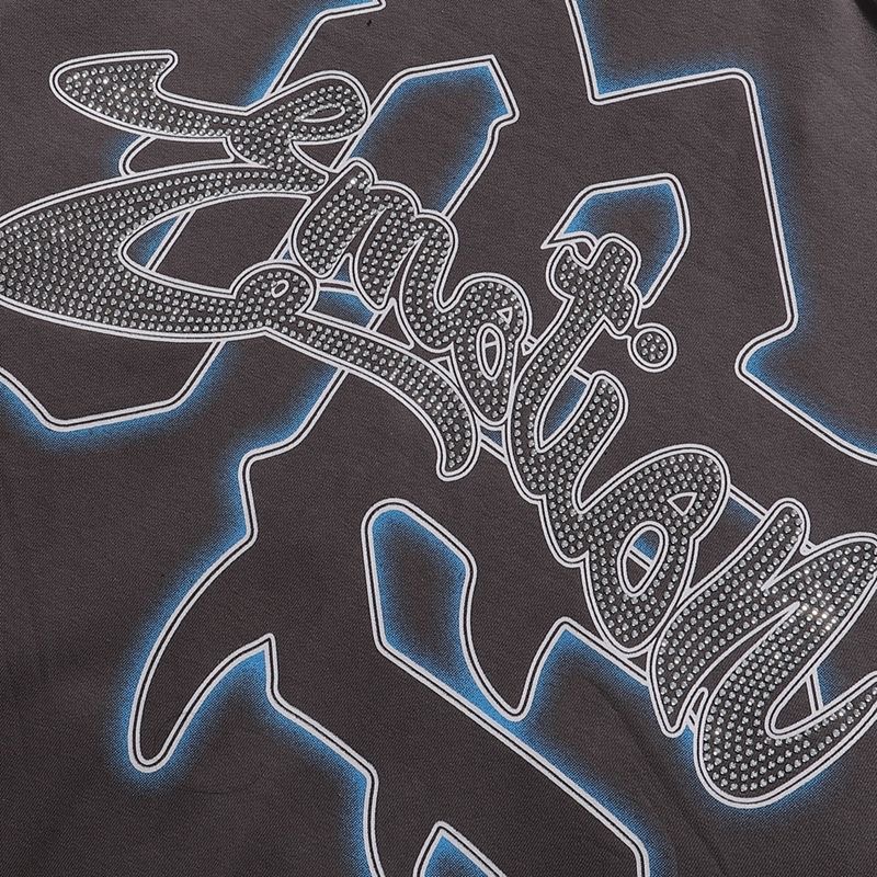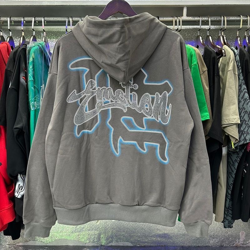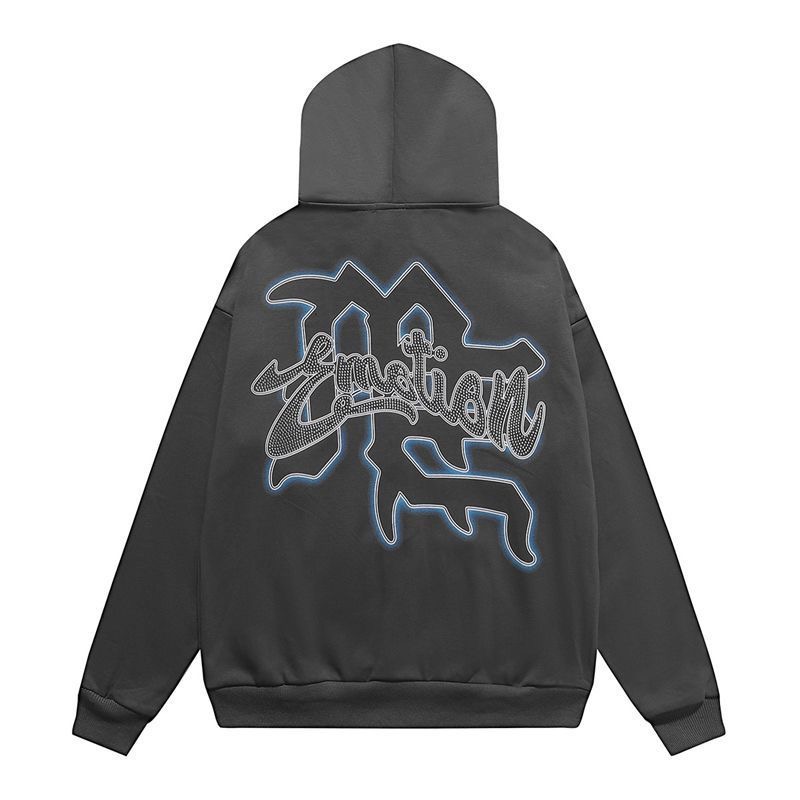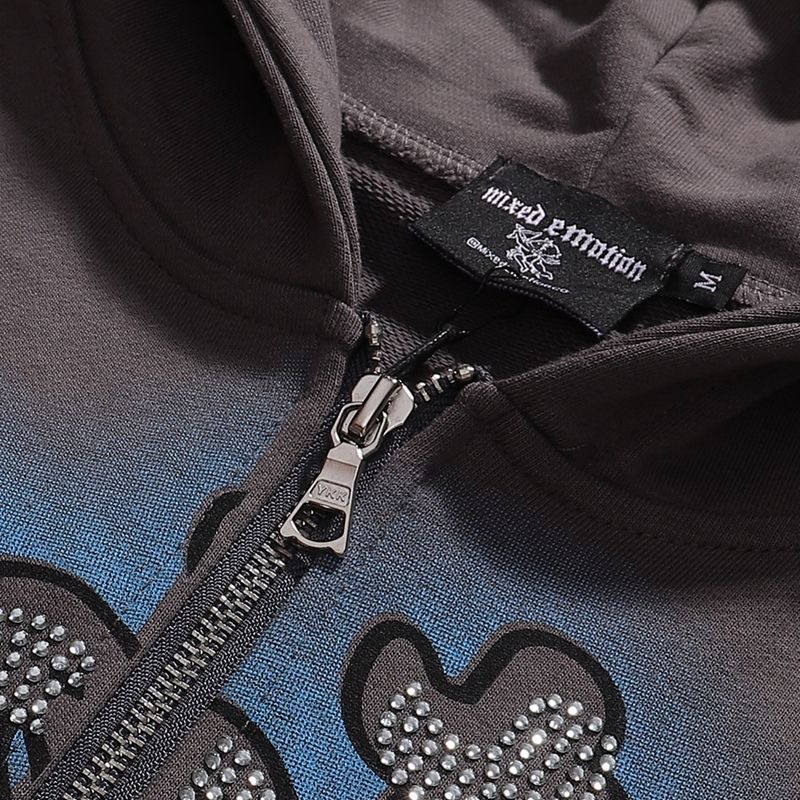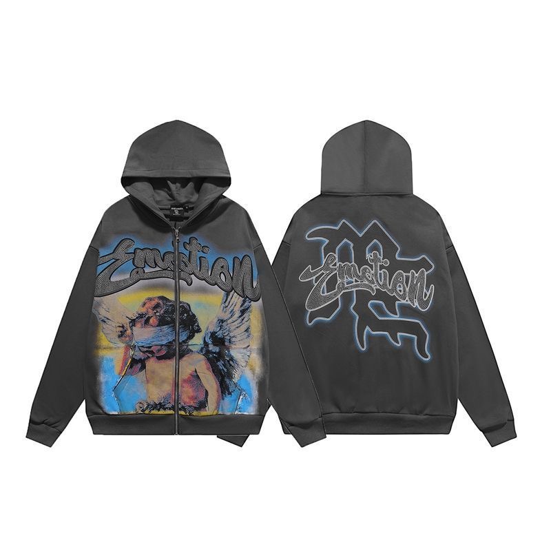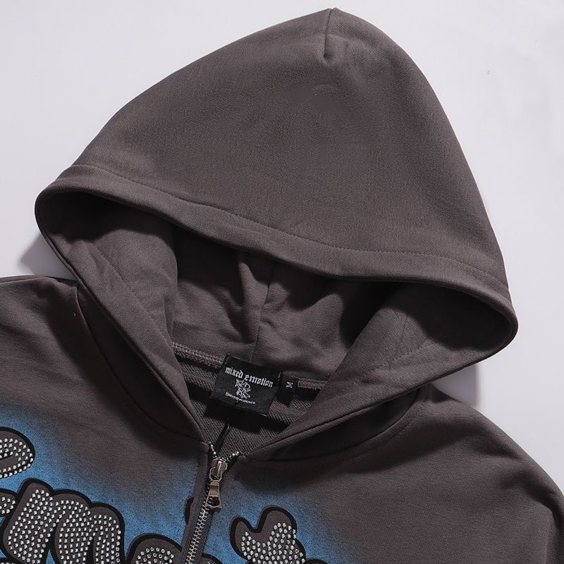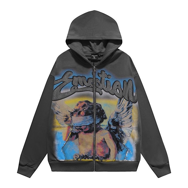 Mixed EMOTION American retro hot stamping print zipper cardigan hooded sweatshirt jacket trendy