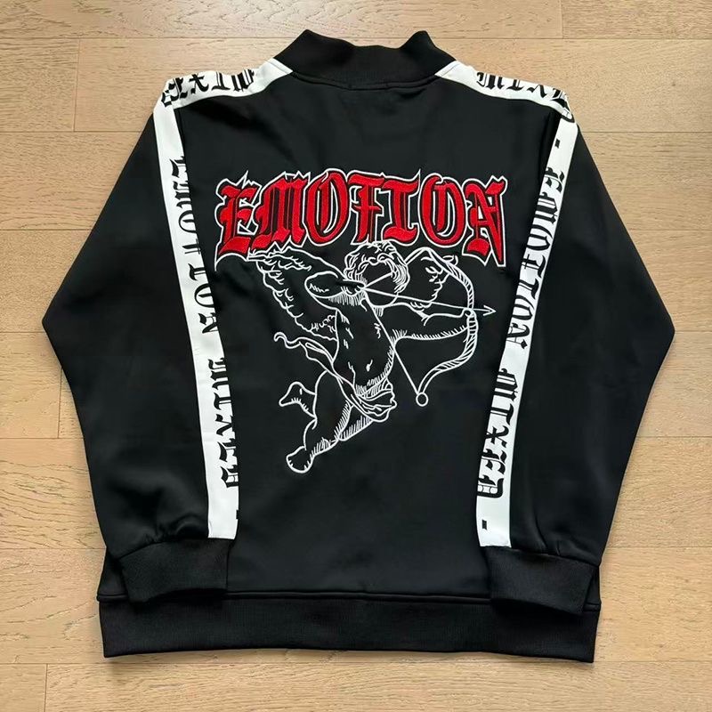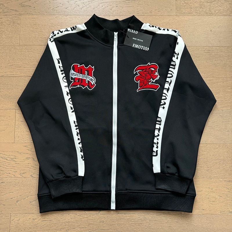 Mixed EMOTION Embroidered Jacket, Sports Straight Pants Set, Men's