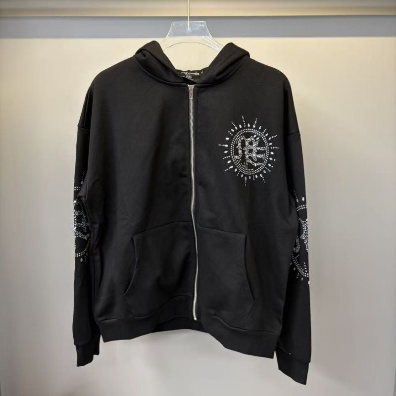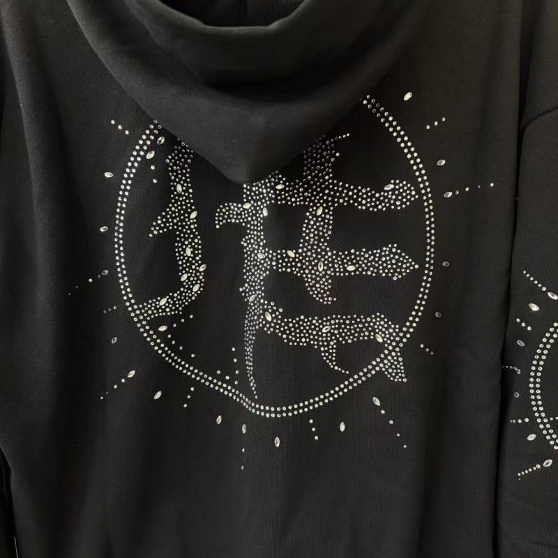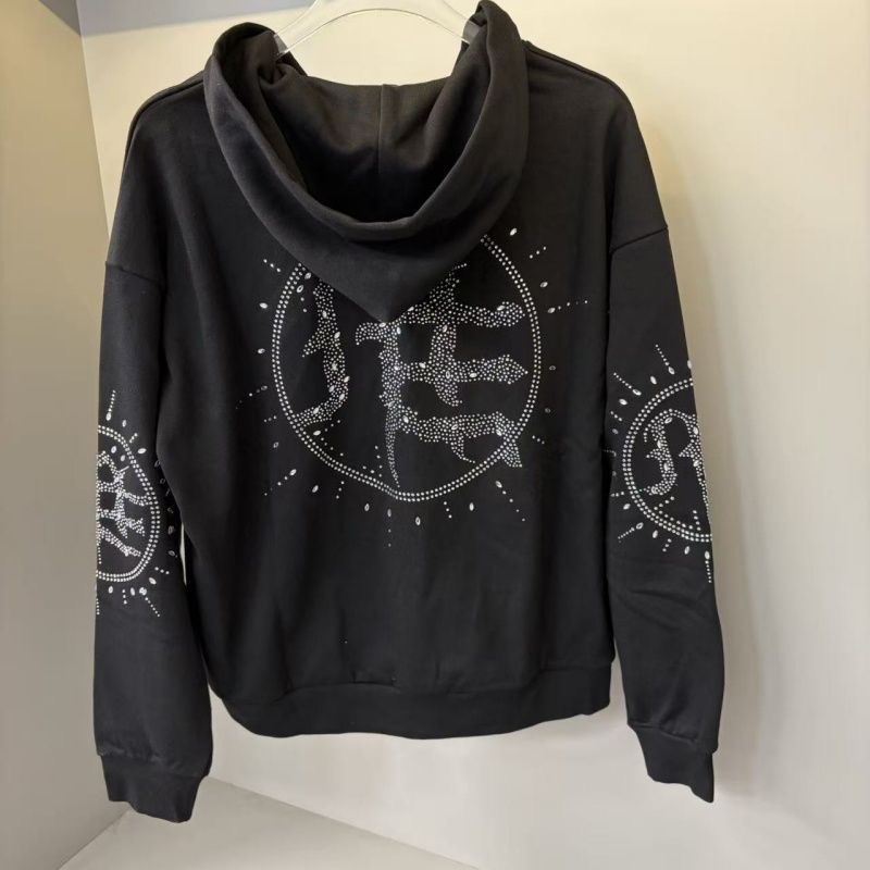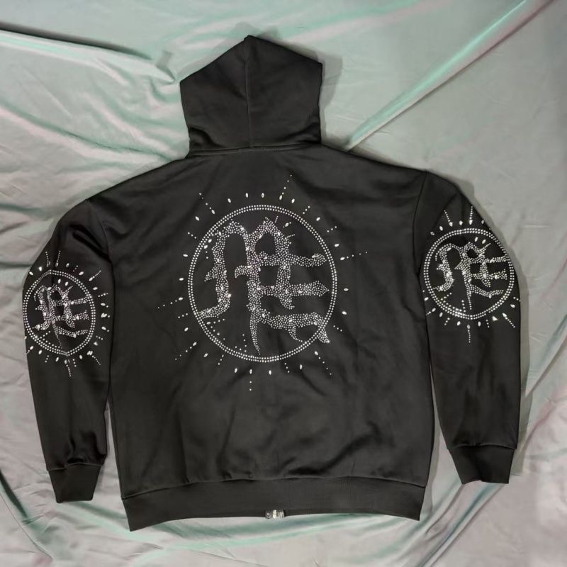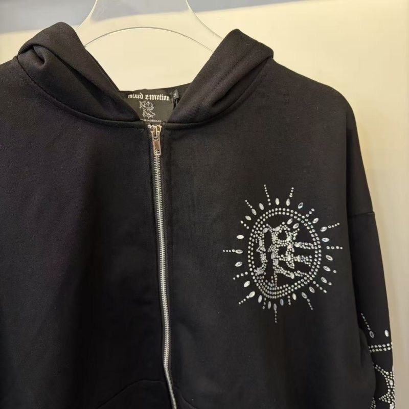 Mixed EMOTION Logo Hot Diamond Hoodie Zipper Jacket