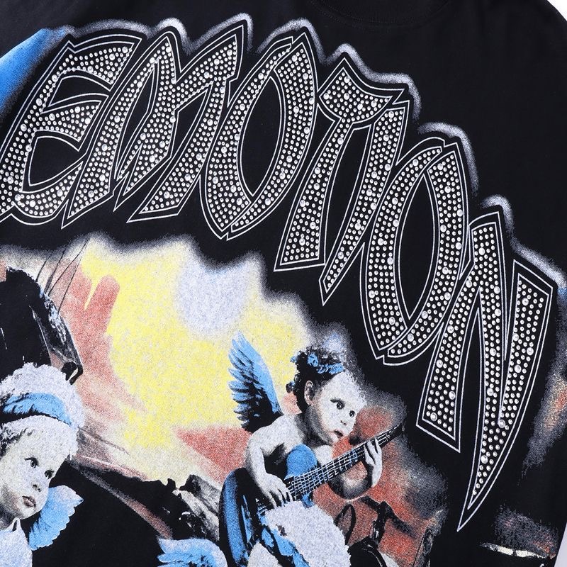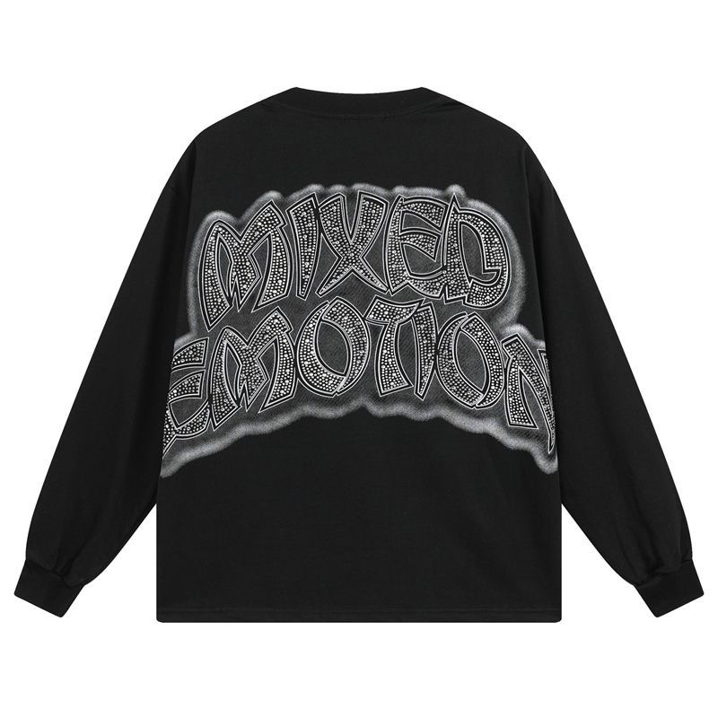 Mixed EMOTION Retro Hot Diamond Letter Graffiti Printed Long Sleeve T-shirt Long T