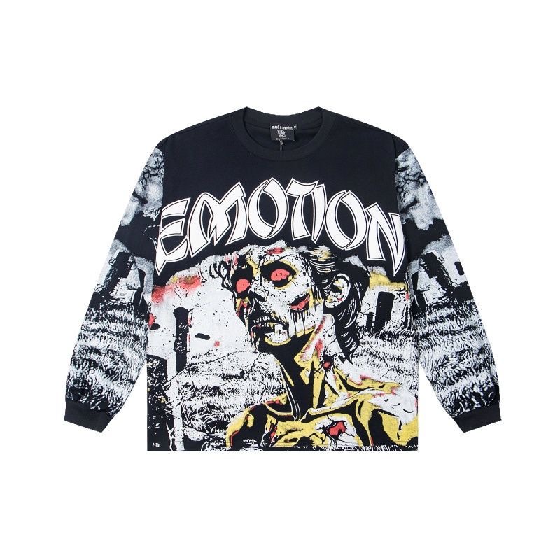 Mixed EMOTION Street Hip Hop Retro Printed Long Sleeve T-shirt Loose Round Neck Bottom Shirt