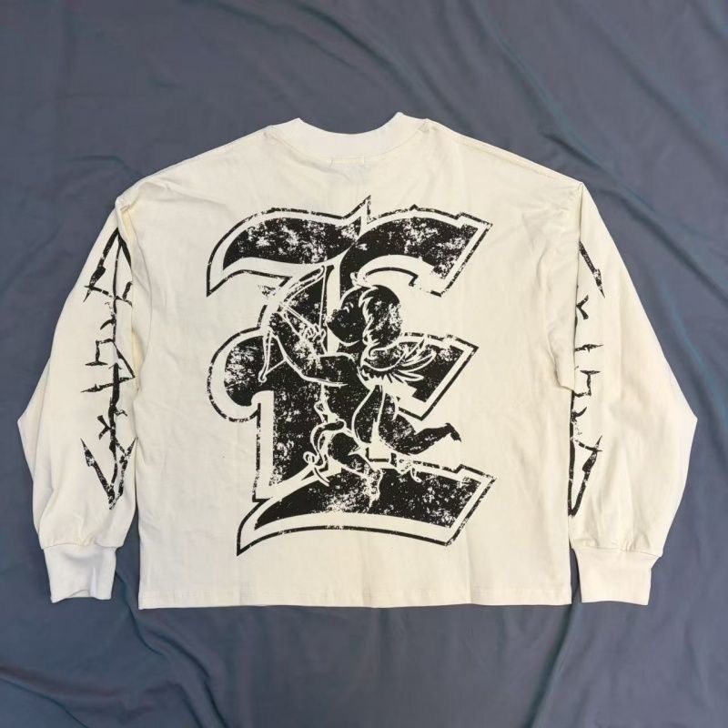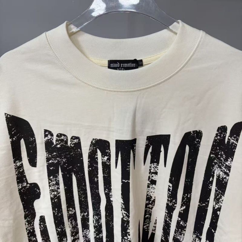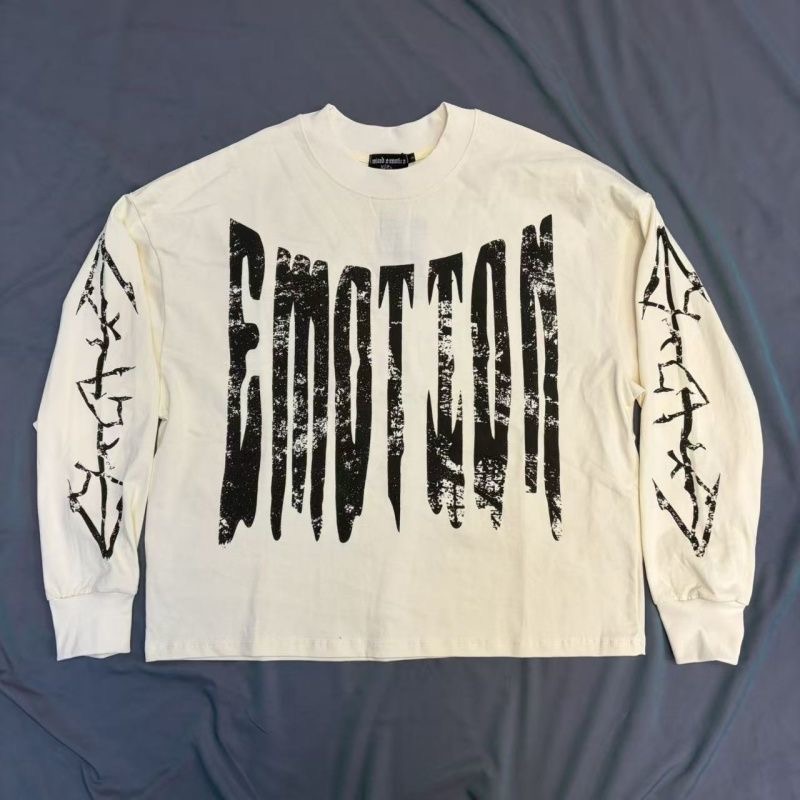Mixed EMOTION Street Retro Graffiti Letter Printed Long Sleeve T-shirt Loose Bottom Shirt