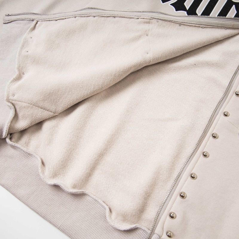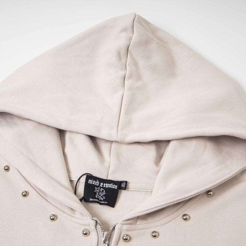 MIXEDEMOTION letter printed nail bead design cardigan hooded sweatshirt