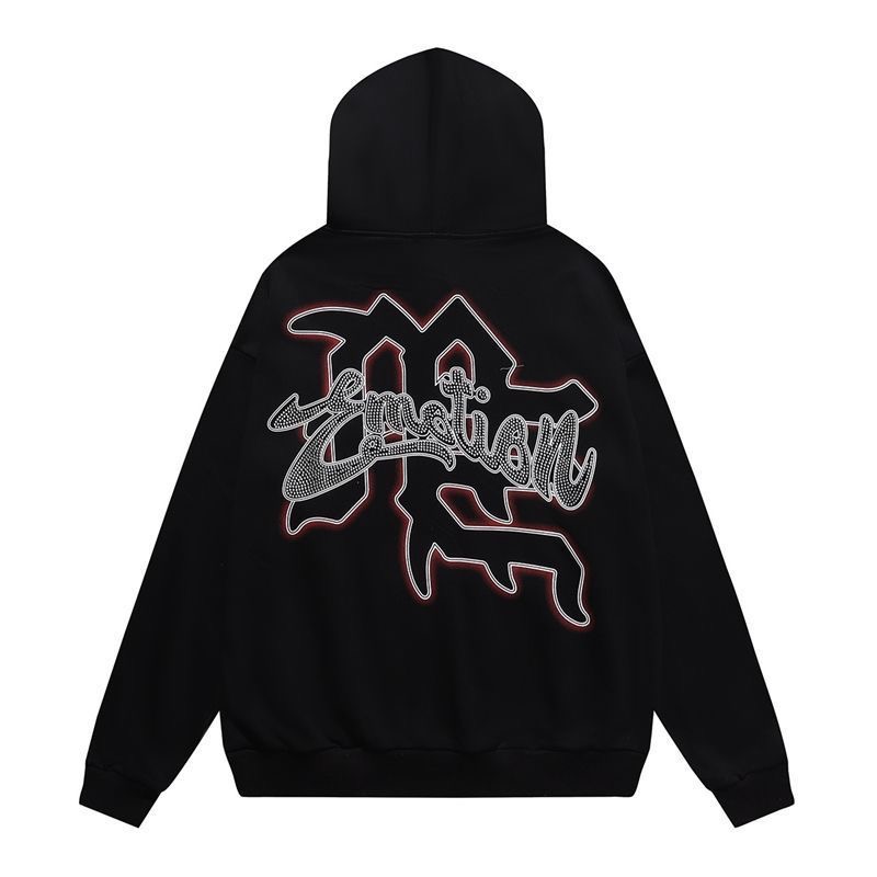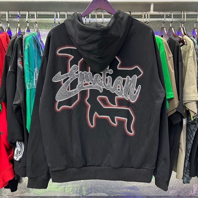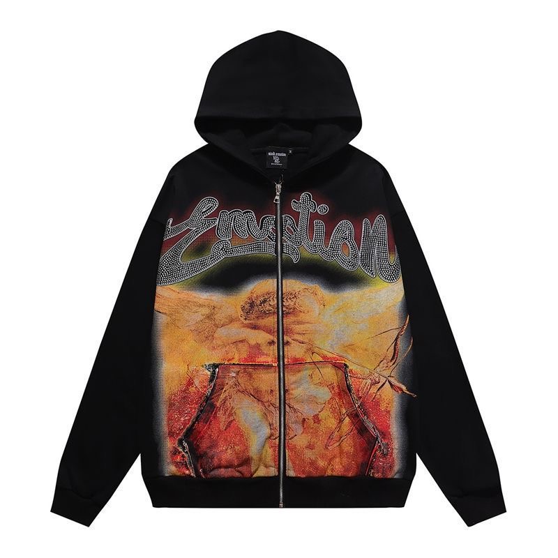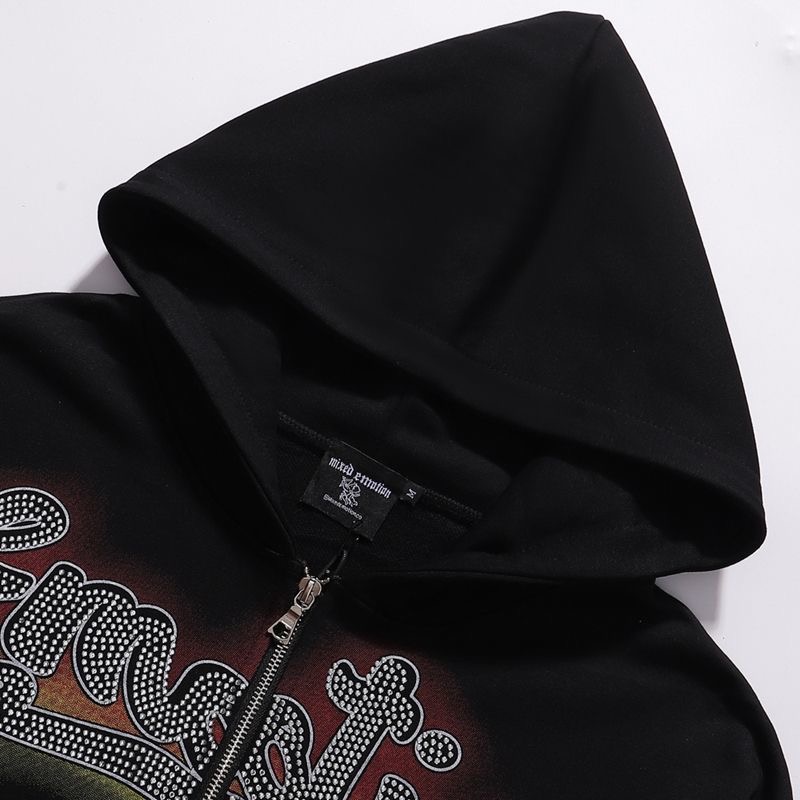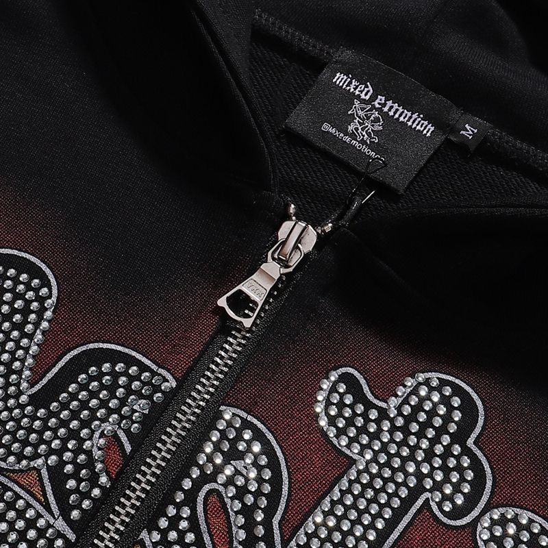 MIXEDEMOTION Retro Letter Hot Diamond Printed Logo American Street Cardigan Hoodie Jacket Trendy