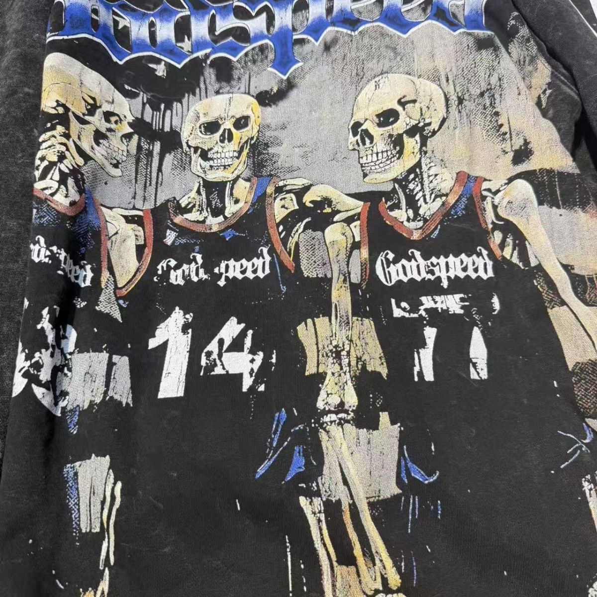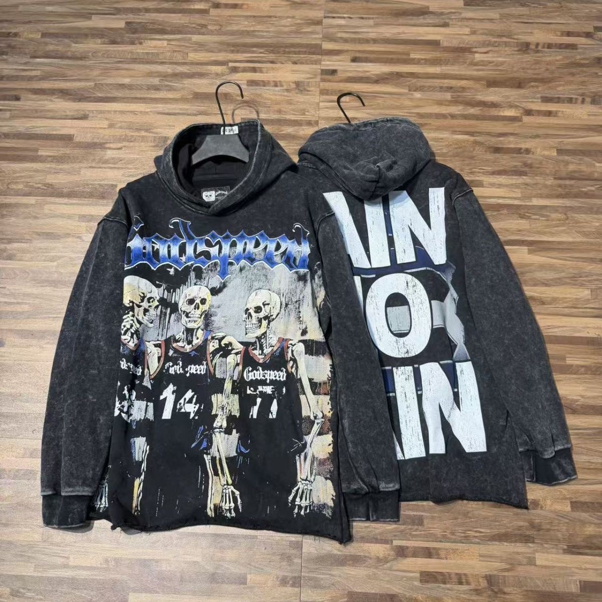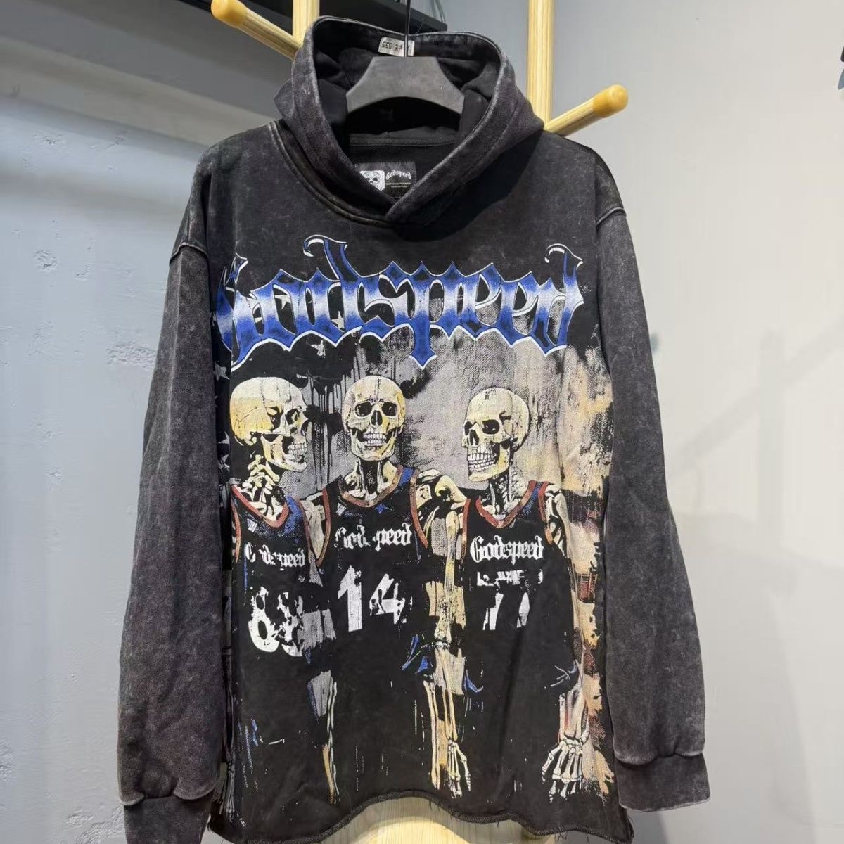 Godspeed American Dream Team Skeleton Washed Outdated Hoodies Hip Hop