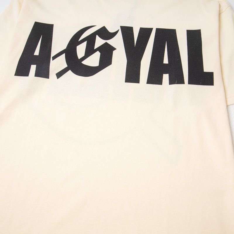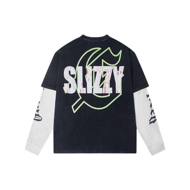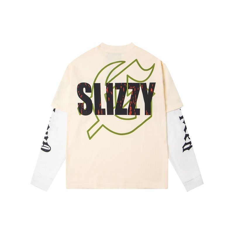 GodSpeed European and American letter printed patchwork couple waffle long sleeved T-shirt