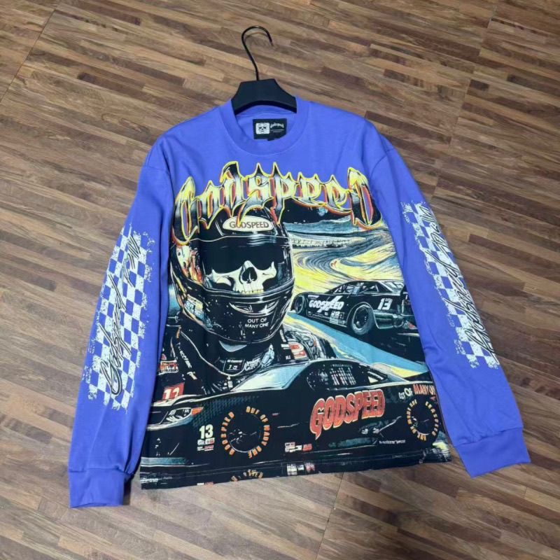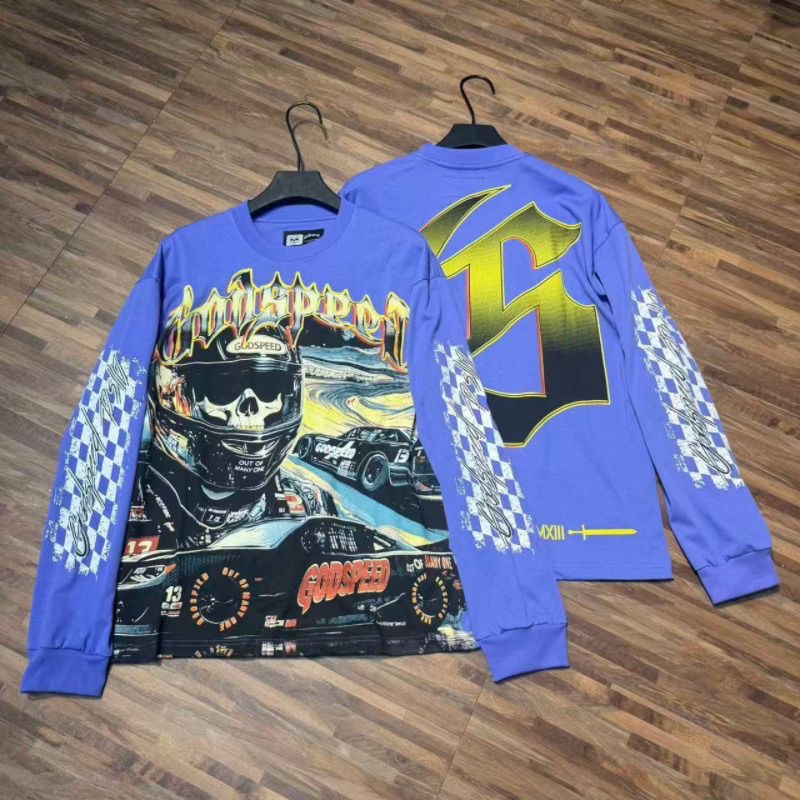 Real time Godspeed Skeleton Racing Street Round Neck Long Sleeve T-shirt for Men